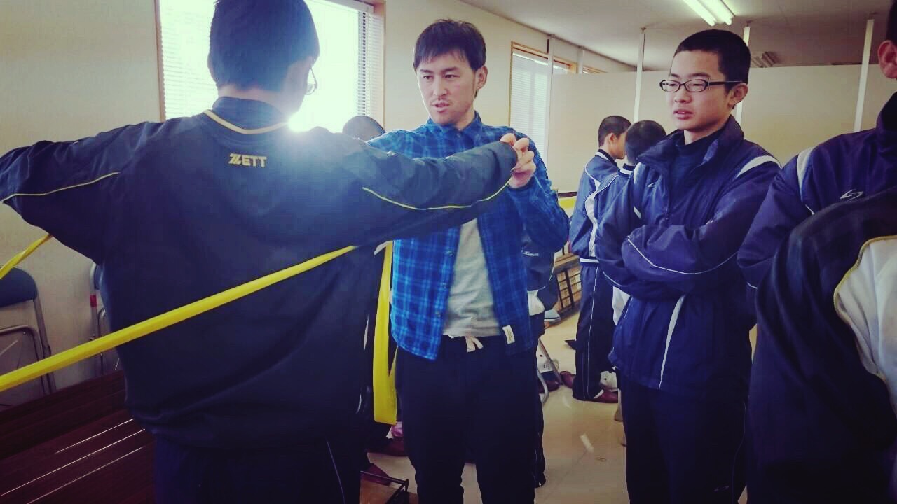 中学3年生中心とした子達の前で、