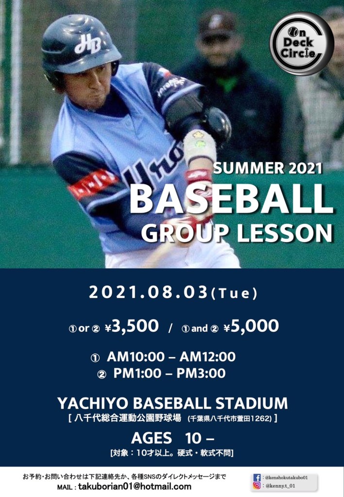7月28日㈬に八千代市民球場にてグループレッスンを開催予定ですが、予定していた人数を越えてきてしまったのですぐさま8月3日㈫にもやる事にしました。