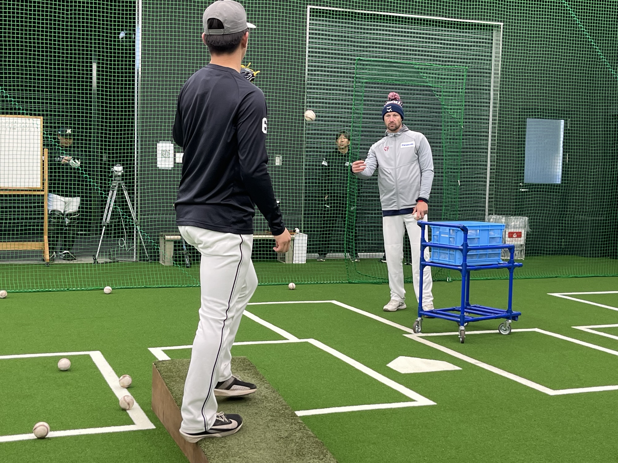 ピッチングコーチという事で主にピッチャーが中心です。それ以外にもバイオメカニクスやコンディショニングなどを中心に加わらせていただいて私も勉強させていただきました。通訳する事も多かったのでまず彼が質問しても答えてくださるように私から事前にコーチにもコミュニケーション取らせて頂いたり、選手とも話をさせていただいたり、やったことのない立場でグラウンドに立たせていただけたおかげで、またもう一つ新しい視点を持つことができたように思います。